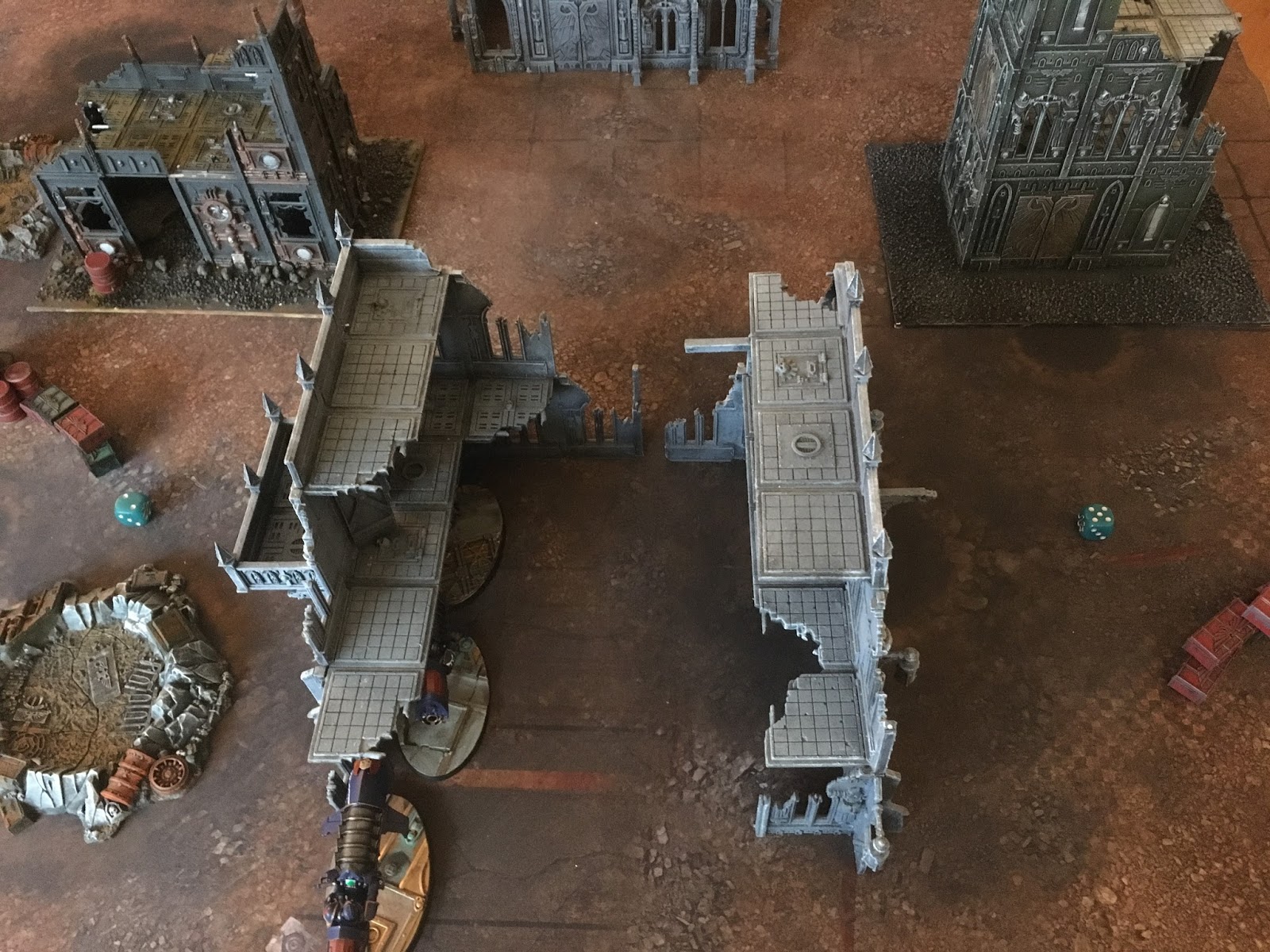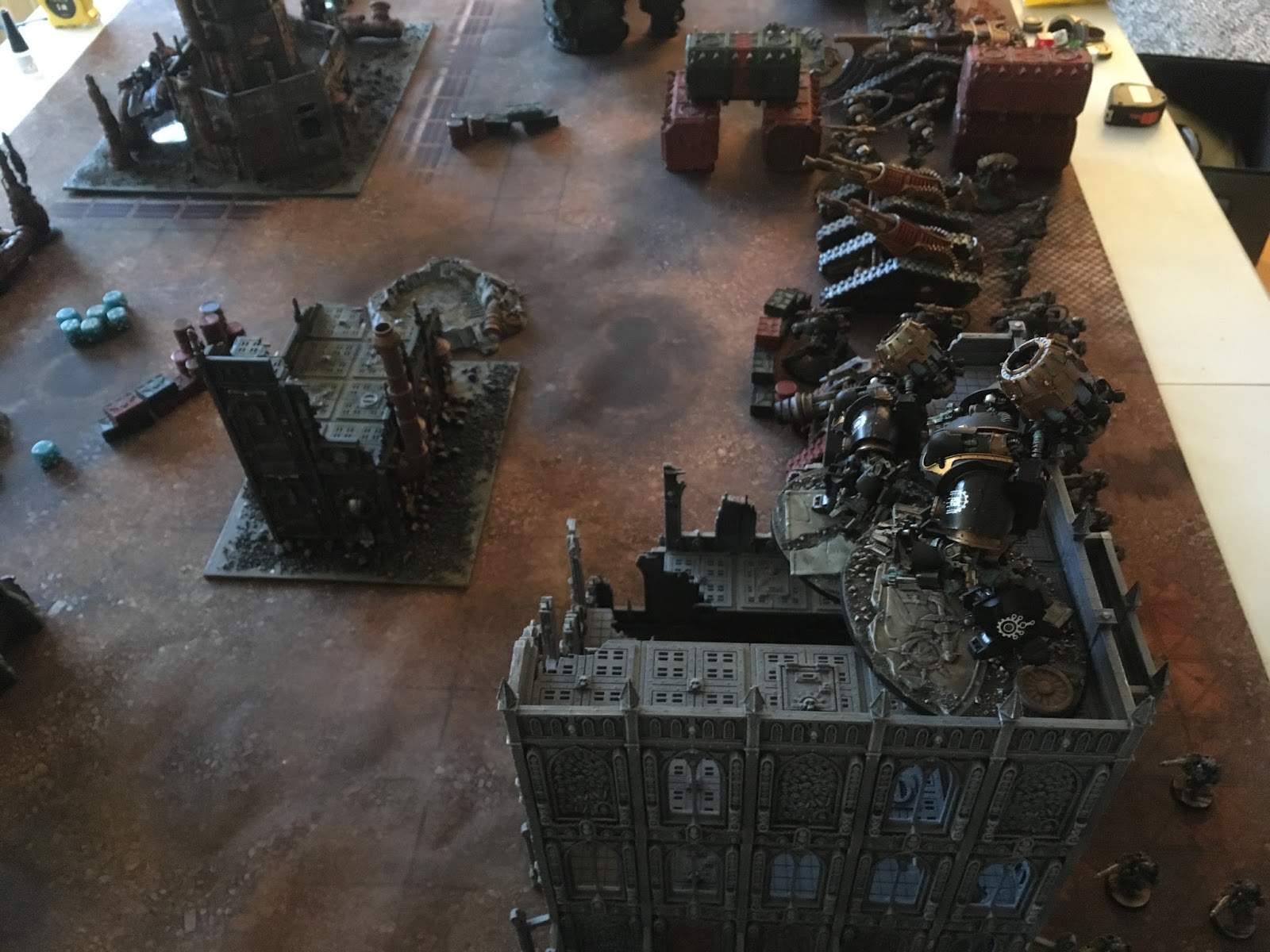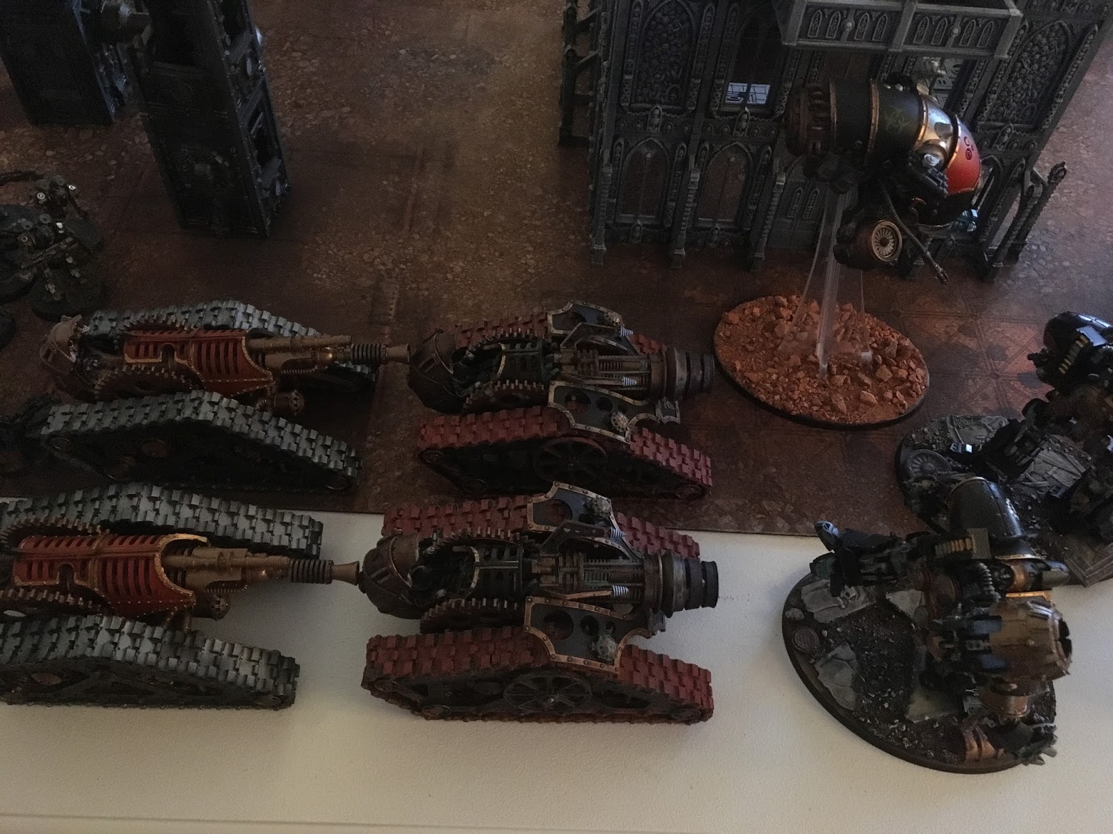two thanatars with a magos. I underestimated these guys, both the difficulty i would have in clearing them, and the damage output they could do. Particularly as the Magos could let them shoot twice every second turn. And just shoot AP3 bolters the other turns. The Tanks were in squadrons, so i more or less assumed that having that having a leviathan shooting at the one, and having my anti tank vets shooting at the other one might resolve some of my problems.